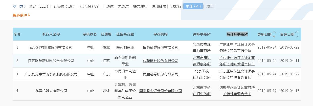 上交所5月24日中止審核的三家企業(yè),會(huì)計(jì)師事務(wù)所均為正中珠江會(huì)計(jì)師事務(wù)所。