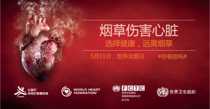 2018年世界無煙日(5月31日)以“煙草和心臟病”為重點(diǎn),旨在凸顯使用煙草與心臟病和其他心血管疾病之間的關(guān)聯(lián),提高廣大公眾對(duì)煙草使用和二手煙暴露對(duì)心血管健康影響的認(rèn)識(shí)。