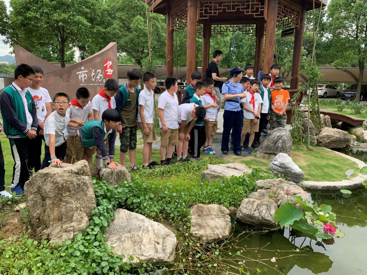 圖為在百草園,工作人員向小學(xué)生詳細(xì)介紹凌霄花、構(gòu)樹、芍藥等40多種中草藥材的藥用部位及其主治功能。王婷 攝
