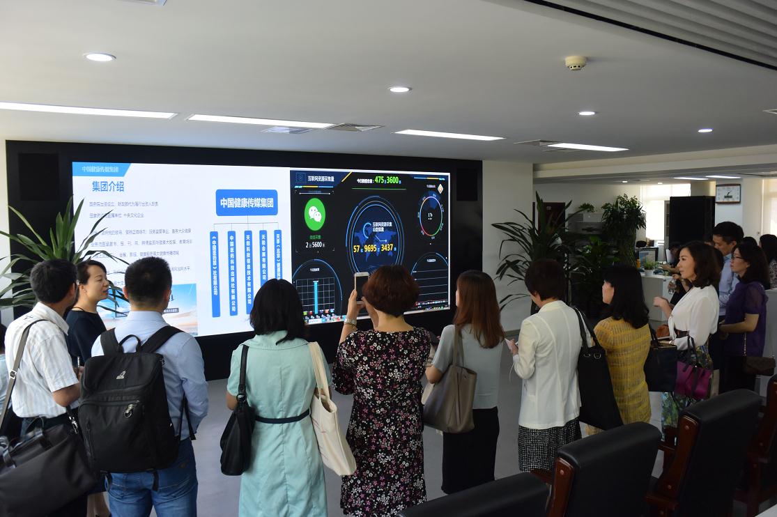 化妝品企業(yè)和協(xié)會(huì)代表參觀中國健康傳媒集團(tuán)利用大數(shù)據(jù)技術(shù)開發(fā)的食品藥品輿情監(jiān)測系統(tǒng)和中國化妝品風(fēng)險(xiǎn)預(yù)警平臺(tái)。