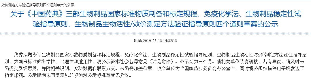 中國(guó)食品藥品網(wǎng)訊(記者 落楠) 6月13日,國(guó)家藥典委員會(huì)發(fā)布信息,對(duì)《中國(guó)藥典》三部,國(guó)家藥典委擬增修訂生物制品國(guó)家標(biāo)準(zhǔn)物質(zhì)制備和標(biāo)定規(guī)程等四個(gè)通則,并對(duì)相關(guān)通則草案進(jìn)行為期三個(gè)月的公示。