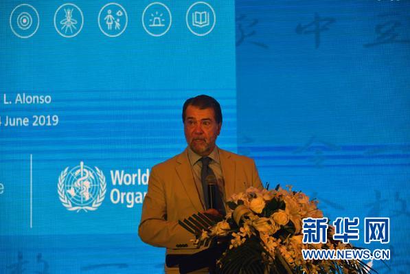 “青蒿素與全球瘧疾防控和消除:歷史與未來”研討會(huì)現(xiàn)場(chǎng),世界衛(wèi)生組織全球瘧疾項(xiàng)目主任佩德羅·阿隆索做題為“全球消除瘧疾的形勢(shì)和挑戰(zhàn)”主旨演講。 新華網(wǎng)發(fā) 云賽俠攝