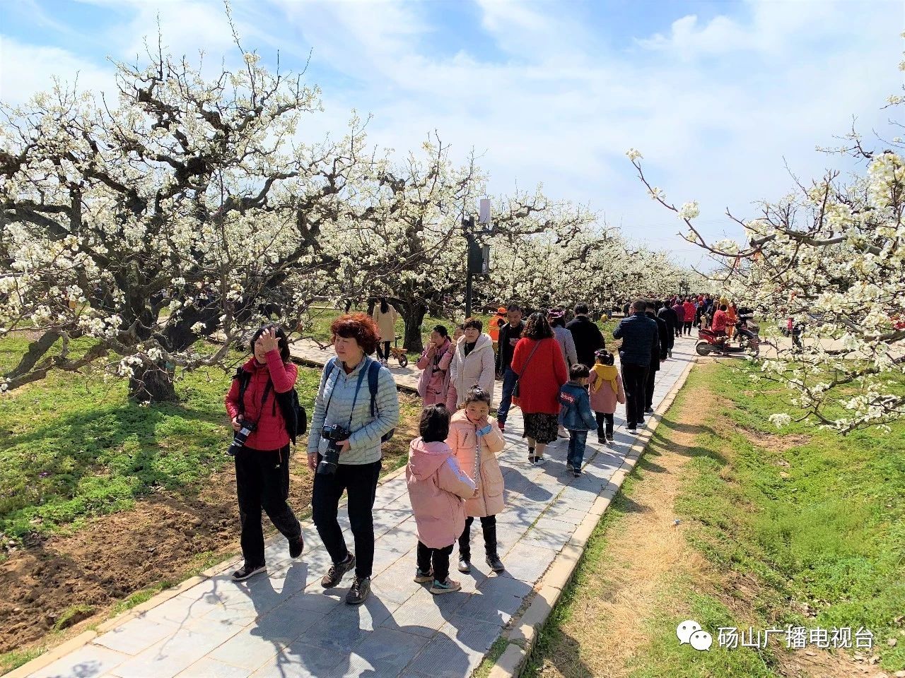 游客:于言:陽光明媚,藍(lán)天白云,很多梨花都在盛開著,我覺得非常的幸運(yùn)能見識(shí)到百年的梨樹盛開著美麗的花朵,同時(shí)也欣賞著梨園的各種文化,民俗表演,同時(shí)也感受到了碭山人民的熱情,我們覺得非常的開心。