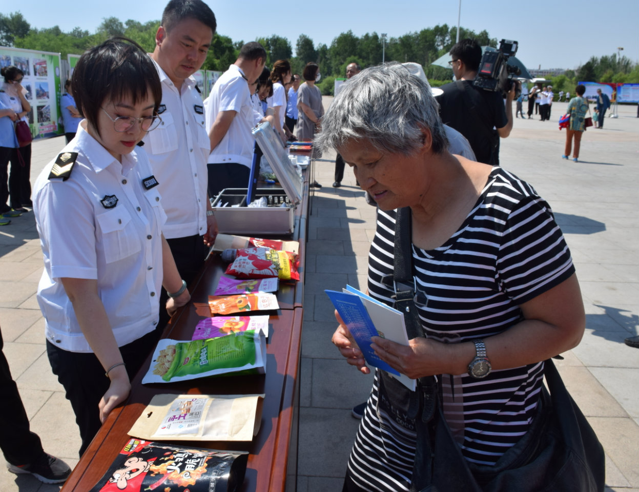 呼倫貝爾市市場監(jiān)管局工作人員向市民普及食品安全科普知識。邰鵬宇/攝