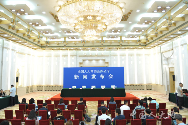 6月29日下午,十三屆全國人大常委會第十一次會議閉幕后,全國人大常委會辦公廳在人民大會堂臺灣廳召開新聞發(fā)布會,全國人大常委會法工委、國家衛(wèi)生健康委、國家藥監(jiān)局等單位有關負責人出席新聞發(fā)布會,共同回答剛剛通過的疫苗管理法的有關問題。圖為新聞發(fā)布會即將開始。中國人大網 陶宏林 攝