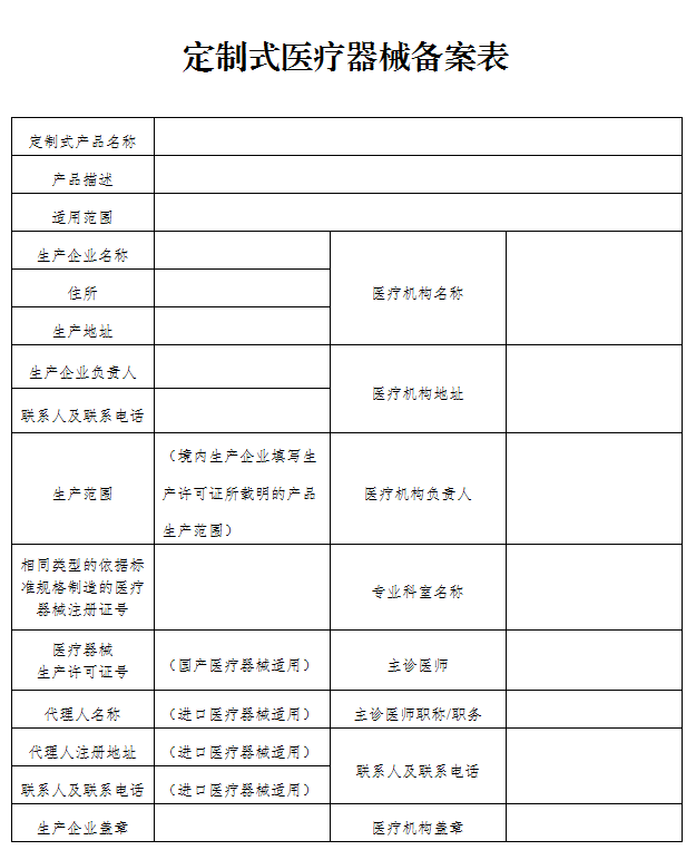 2.定制式醫(yī)療器械備案信息表