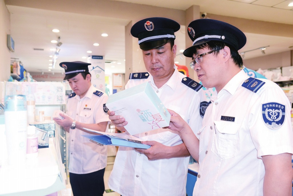 圖為執(zhí)法人員對一家母嬰產(chǎn)品經(jīng)營單位銷售的孕產(chǎn)婦和嬰幼兒專用化妝品進行檢查。董寶栓 攝