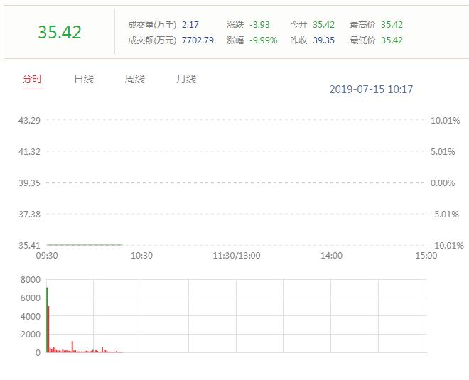 中國食品藥品網(wǎng)訊(記者 李碩)7月15日,東阿阿膠股份有限公司(證券代碼為000423,以下簡稱東阿阿膠)發(fā)布2019年半年度業(yè)績預(yù)告,預(yù)計(jì)公司2019年半年度凈利潤為18110~21560萬元,比上年同期下降75%~79%。7月15日上午9點(diǎn)30分開盤,東阿阿膠封死跌停,截至午間收盤,報(bào)35.42元/股,跌幅9.99%。