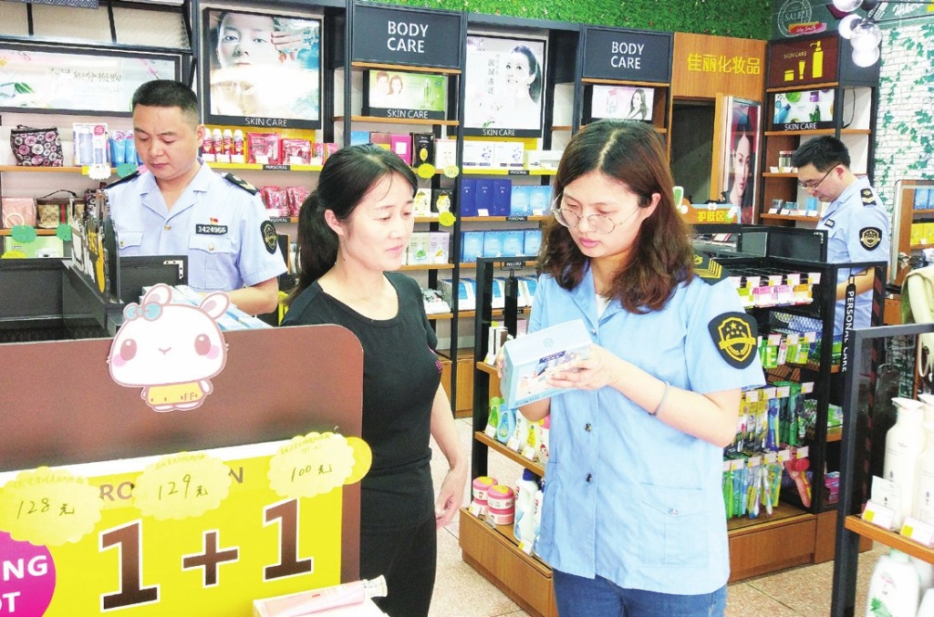 圖為該局執(zhí)法人員在一家化妝品經營企業(yè)檢查。周驍骙 攝