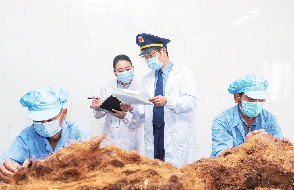 圖為執(zhí)法人員在一家中藥飲片生產(chǎn)企業(yè)檢查。李斌 攝