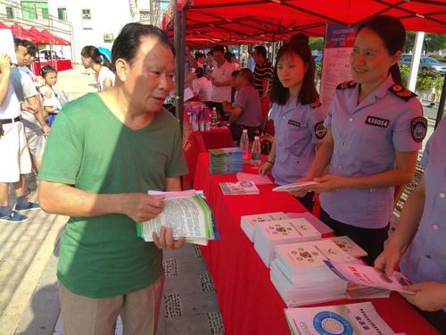 永州市食藥監(jiān)局工作人員向市民發(fā)放科普資料。攝/王利雄