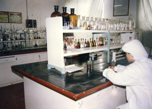 20世紀(jì)70年代?神威藥業(yè)前身欒城縣紅旗制藥廠質(zhì)檢崗位。