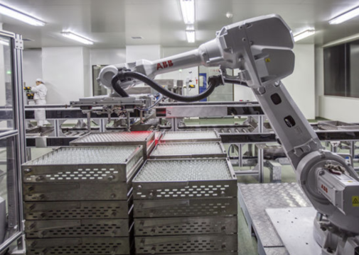 機(jī)器人上瓶生產(chǎn)線。