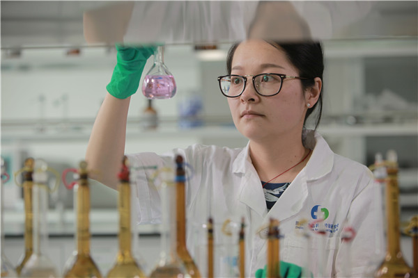 ?20世紀(jì)90年代石家莊神威藥業(yè)股份有限公司工作人員正在進(jìn)行質(zhì)量檢驗(yàn)。