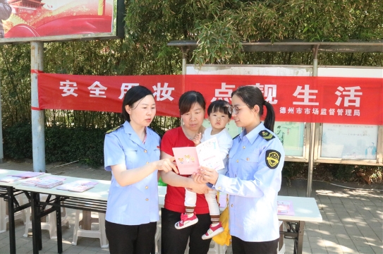 5月22日,山東省德州市德城區(qū)市場監(jiān)督管理局開展化妝品安全科普進社區(qū)活動,現(xiàn)場發(fā)放宣傳手冊200余份,解答咨詢40余人次,重點對化妝品安全使用知識、選購注意事項等內(nèi)容進行宣講,警示消費者謹慎對待化妝品廣告宣傳語,增強消費者安全用妝意識。