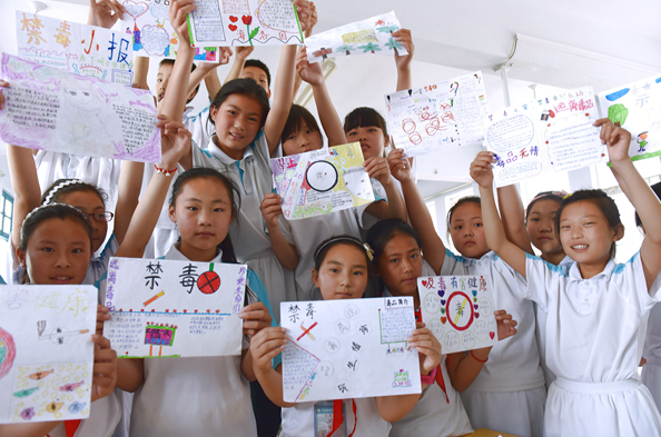 2019年6月24日,江蘇省東海縣黃川鎮(zhèn)在開展禁毒宣傳進校園教育宣傳活動。